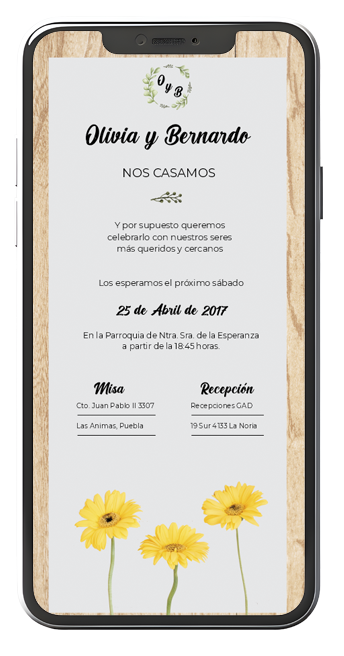 - Información de iglesia, lugar del evento, mesa de regalos, etiqueta…
